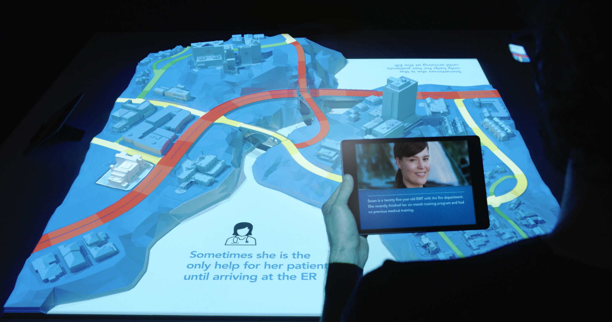 Working closely with the team, we also developed custom 3D projection mapping software, enabling us to achieve flawless pixel-to-pixel mapping from multiple projectors. Additionally, I participated in the design of the synchronized tablets that visitors can use to interact with and learn more about the stories told in the installation.